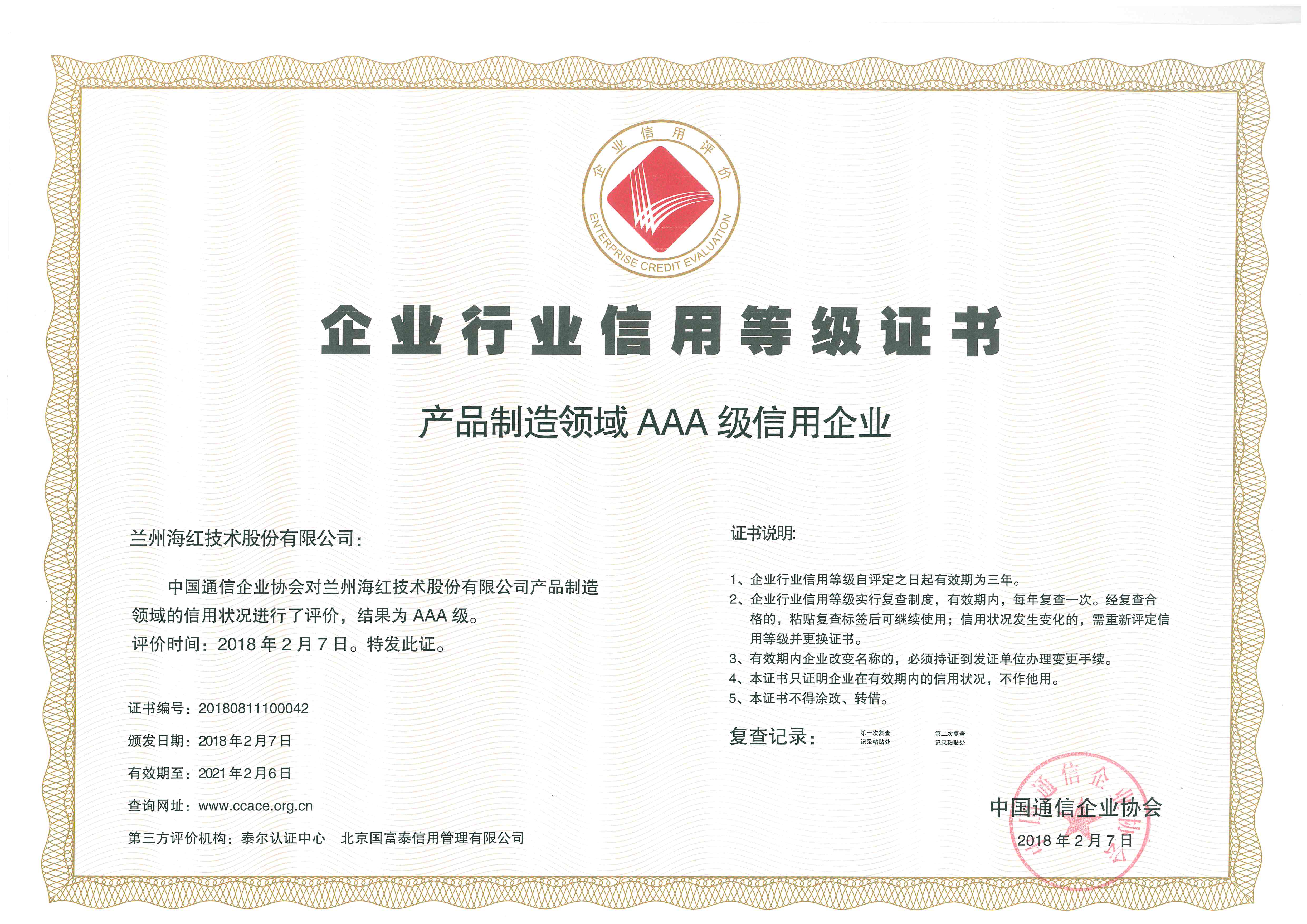 我公司被中國(guó)通信企業(yè)協(xié)會(huì)評(píng)價(jià)為“產(chǎn)品制造領(lǐng)域AAA級(jí)信用企業(yè)” By 海紅技術(shù) 2018-03-02 00:00:00 0次 我公司被中國(guó)通信企業(yè)協(xié)會(huì)評(píng)價(jià)為“產(chǎn)品制造領(lǐng)域AAA級(jí)信用企業(yè)”,取得企業(yè)行業(yè)信用等級(jí)證書(shū)。 上一篇:我公司參與起草的行業(yè)標(biāo)準(zhǔn)《通信電源和機(jī)房環(huán)境節(jié)能技術(shù)指南 第5部分:氣流組織》已正式出版 下一篇:我公司又取得一項(xiàng)實(shí)用新型專(zhuān)利和完成兩項(xiàng)計(jì)算機(jī)軟件著作權(quán)