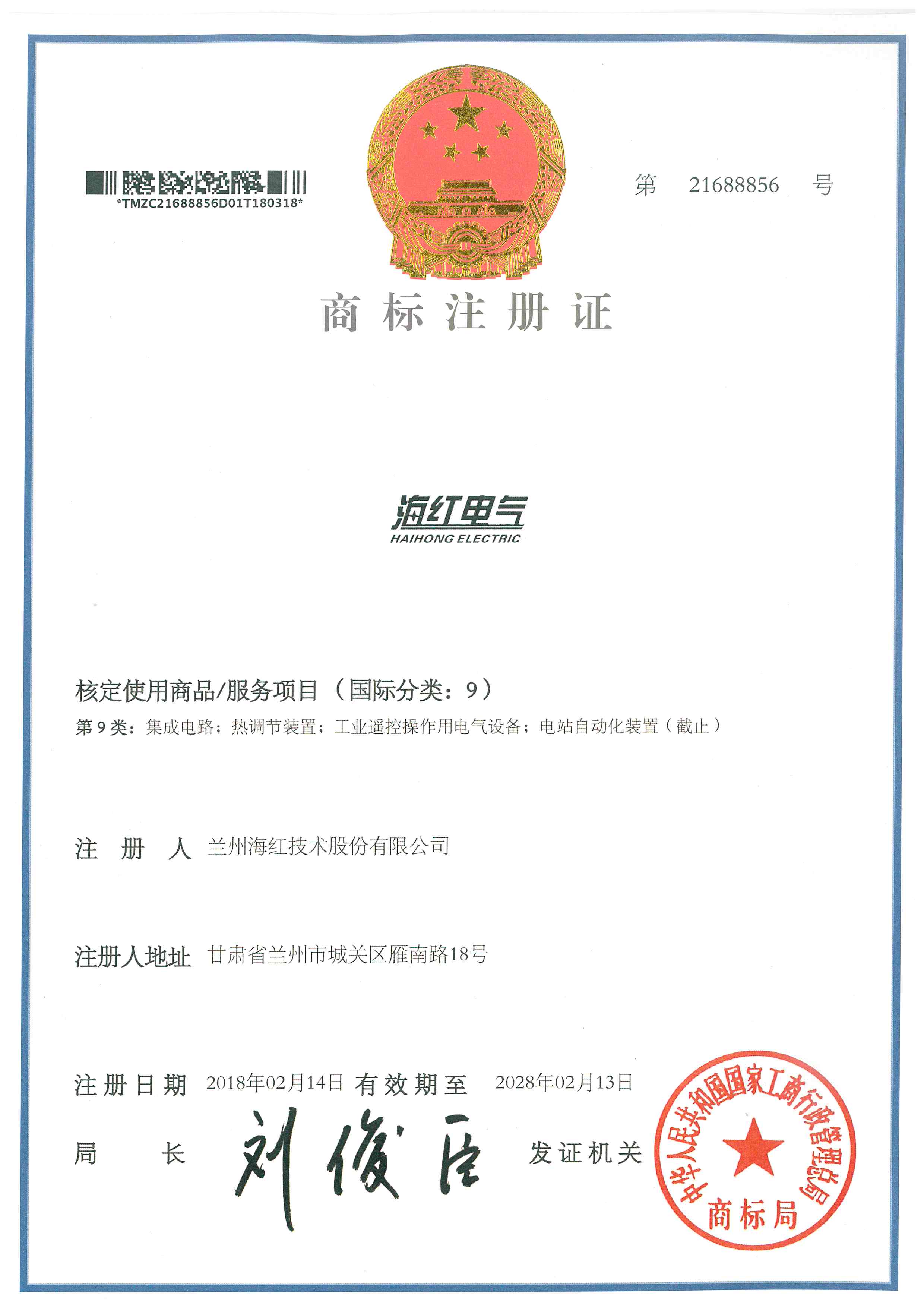 我公司又取得一項(xiàng)商標(biāo)注冊(cè)證 By 海紅技術(shù) 2018-04-12 00:00:00 0次 我公司又取得1項(xiàng)由國(guó)家工商行政管理總局商標(biāo)局簽發(fā)的商標(biāo)注冊(cè)證,至此我公司已取得5項(xiàng)商標(biāo)注冊(cè)證。 上一篇:我公司又取得一項(xiàng)實(shí)用新型專(zhuān)利和完成兩項(xiàng)計(jì)算機(jī)軟件著作權(quán) 下一篇:我公司被認(rèn)定為甘肅省企業(yè)質(zhì)量信用等級(jí)AAA級(jí)企業(yè)