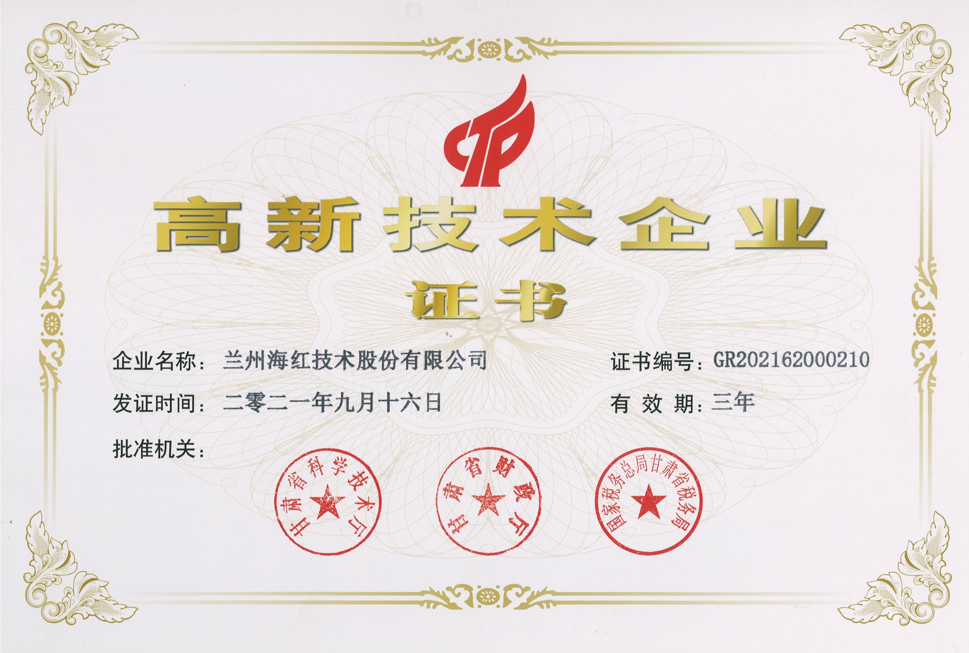 我司再次取得高新技術(shù)企業(yè)證書