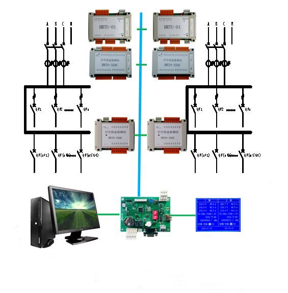 此方案主要運用于AB雙路與UPS雙路電源系統(tǒng)的交流配電設(shè)備,實現(xiàn)獨立雙路交流電源分配設(shè)備的全面監(jiān)控。具有獨立雙路交流配電設(shè)備雙路母線電量及配出支路狀態(tài)的監(jiān)測功能,并具有故障聲光告警功能。同時具備遙測、遙信、遙控功能。