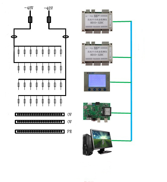 該系統(tǒng)主要應(yīng)用于通信用直流電源配電設(shè)備的運(yùn)行狀態(tài)監(jiān)測,其主要完成主備雙路母線電量與配出支路的開關(guān)狀態(tài)的實(shí)時監(jiān)測。實(shí)現(xiàn)對96路配電支路狀態(tài)監(jiān)測。具有電流、電壓超限與配出支路故障聲光告警功能。具有RS-232/485等通信接口,方便實(shí)現(xiàn)網(wǎng)絡(luò)化集中監(jiān)控。